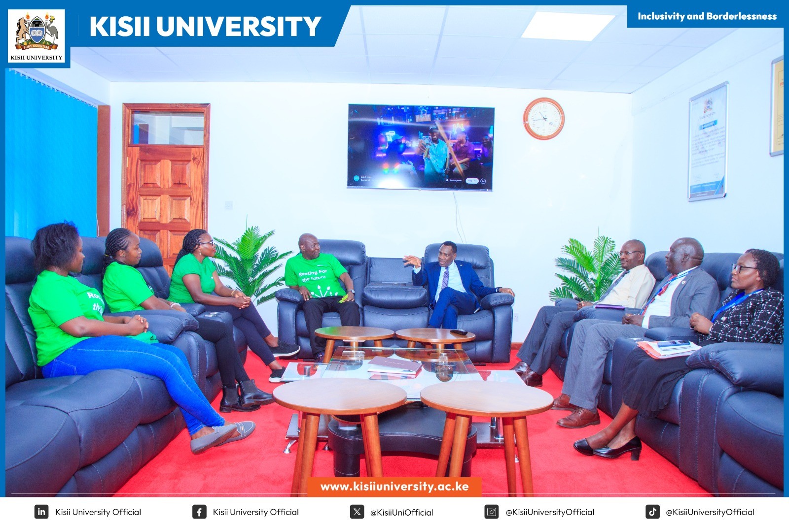 The Vice Chancellor today hosted a delegation from Safaricom Foundation, marking the beginning of a promising partnership that holds immense potential for our students and the wider community. Through a Memorandum of Understanding currently at its beginning stages, Kisii University and Safaricom Foundation are laying the foundation for collaboration in areas that inspire innovation, create internship opportunities for our students, and drive meaningful societal transformation. Together, we envision a future where education and industry unite to empower the next generation of changemakers.