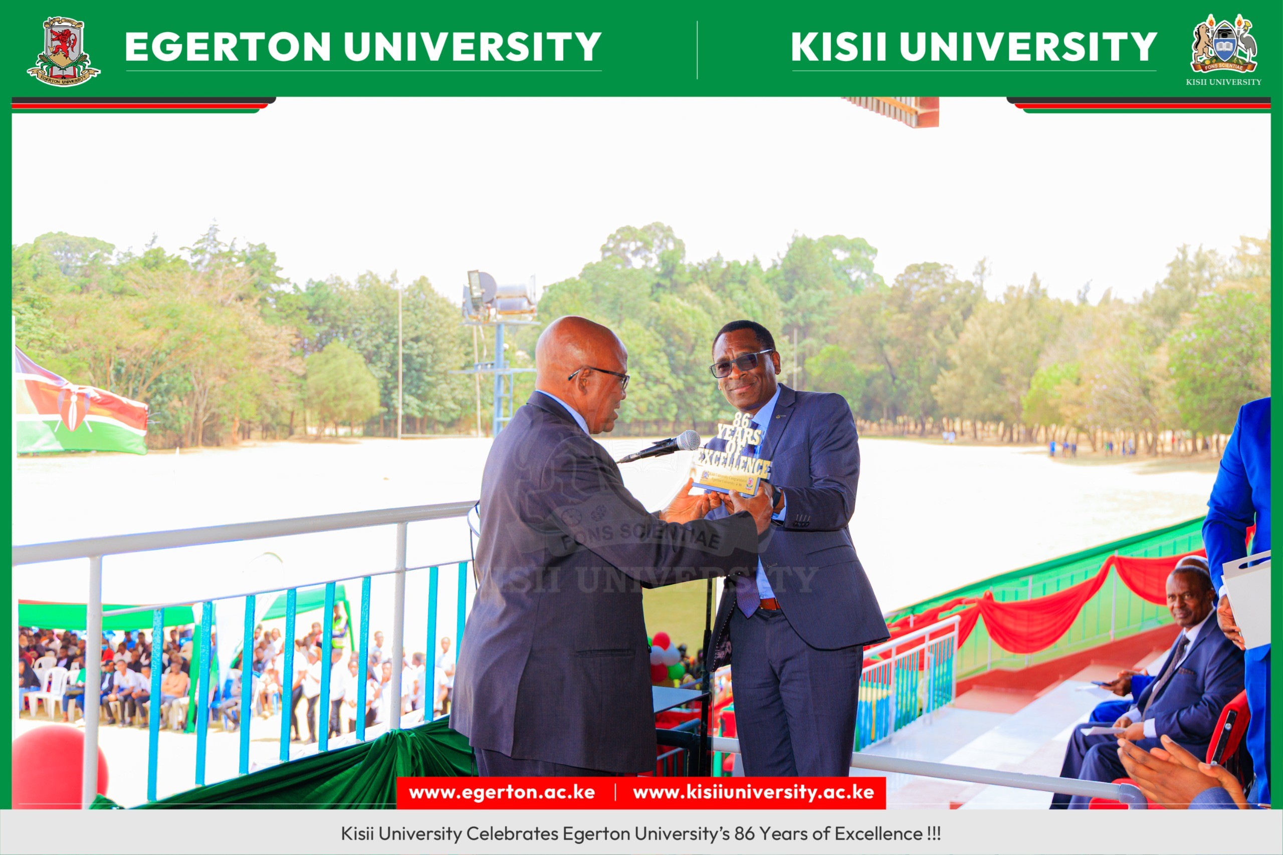 Led by our Vice Chancellor, Kisii University proudly joined the academic community in celebrating Egerton University on the occasion of her 86th year of distinguished service, marked during today,s Open Day celebrations. This moment was more than a celebration, it was a powerful affirmation of unity, shared purpose, and the enduring spirit of scholarship. Kisii University stands shoulder to shoulder with fellow academic giants, committed to learning from one another, engaging meaningfully, and building networks that elevate higher education for the greater good. Congratulations to Egerton University on 86 remarkable years of impact and excellence. Here,s to an even brighter future, bold in vision, rich in collaboration, and transformative for generations to come.